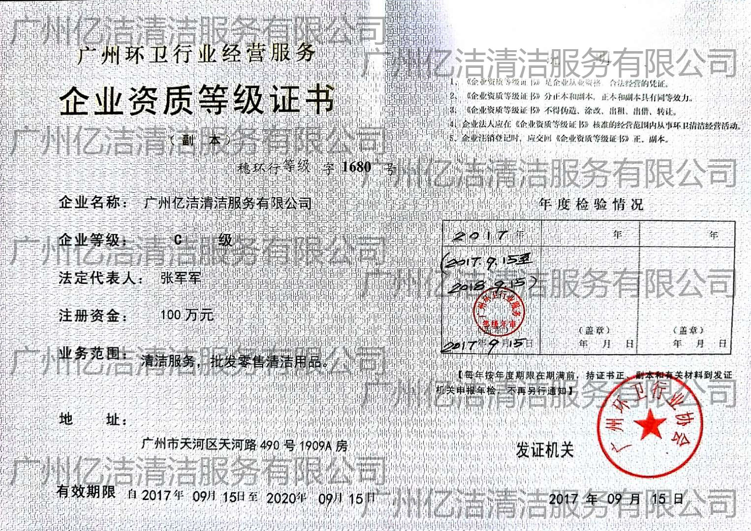 廣州億潔清潔服務(wù)有限公司是經(jīng)廣州市工商行政管理局批準(zhǔn)成立的(注冊(cè)資本:100萬元人民幣)。具有獨(dú)立法人資質(zhì)。公司成立2015年,公司具備完善的管理體系和高素質(zhì)管理隊(duì)伍,擁有特種技術(shù)人員33名,保潔服務(wù)人員上萬名,覆蓋廣州市,能及時(shí)調(diào)配并快速投入高效運(yùn)行。我們的每個(gè)員工都經(jīng)過公司的嚴(yán)格篩選,嚴(yán)格培訓(xùn),定期培訓(xùn)后持證上崗以保證服務(wù)品質(zhì),保障客戶的權(quán)利,利益,形象等不受損失。 廣州億潔清潔公司是一家設(shè)備齊全,技術(shù)強(qiáng)大的綜合型清潔服務(wù)公司,為客戶提供完善服務(wù)尊定了堅(jiān)定的基礎(chǔ)。 司于2010年全面推行了ISO9001質(zhì)量管理體系認(rèn)證和ISO14001國(guó)際環(huán)保體系認(rèn)證。先后獲得廣州高層建筑外墻清洗維修作業(yè)【安全資質(zhì)證書】、【廣州環(huán)衛(wèi)企業(yè)等級(jí)證書C級(jí)資質(zhì)】、廣州疾控中心頒發(fā)的【四害消殺服務(wù)資質(zhì)證】、【空氣治理A級(jí)資質(zhì)】、中國(guó)石材協(xié)會(huì)頒發(fā)的【石材資質(zhì)B級(jí)資質(zhì)】等。 廣州億潔清潔服務(wù)有限公司致力于打造專業(yè)、實(shí)惠、靠譜的保潔服務(wù)公司,把專業(yè)的事情交給專業(yè)的我們,您放心! 億潔清潔服務(wù)項(xiàng)目: 廣州保潔服務(wù):新建樓宇、別墅、酒店、醫(yī)院、辦公樓、賓館、企事業(yè)單位廠房竣工后開荒及裝修后精細(xì)保潔.工程保潔服務(wù)。 廣州物業(yè)托管:為廣州市各大企事業(yè)單位、賓館、政府機(jī)關(guān)、小區(qū)物業(yè)、酒店及廠房提供專業(yè)化保潔、園林、設(shè)施維護(hù)等管理服務(wù)。 廣州高空作業(yè):高空玻璃幕...[詳情]